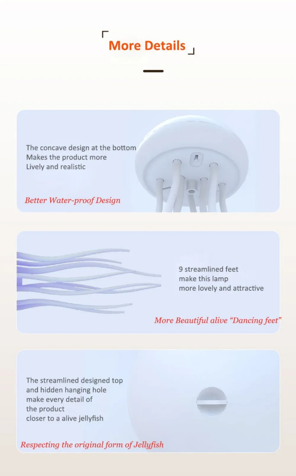 Dynamic Tentacle Movement: Featuring nine flexible tentacles, this innovative jellyfish lamp simulates the enchanting sway of real jellyfish. The captivating motion not only adds visual interest but also sparks creativity and wonder in both children and adults.